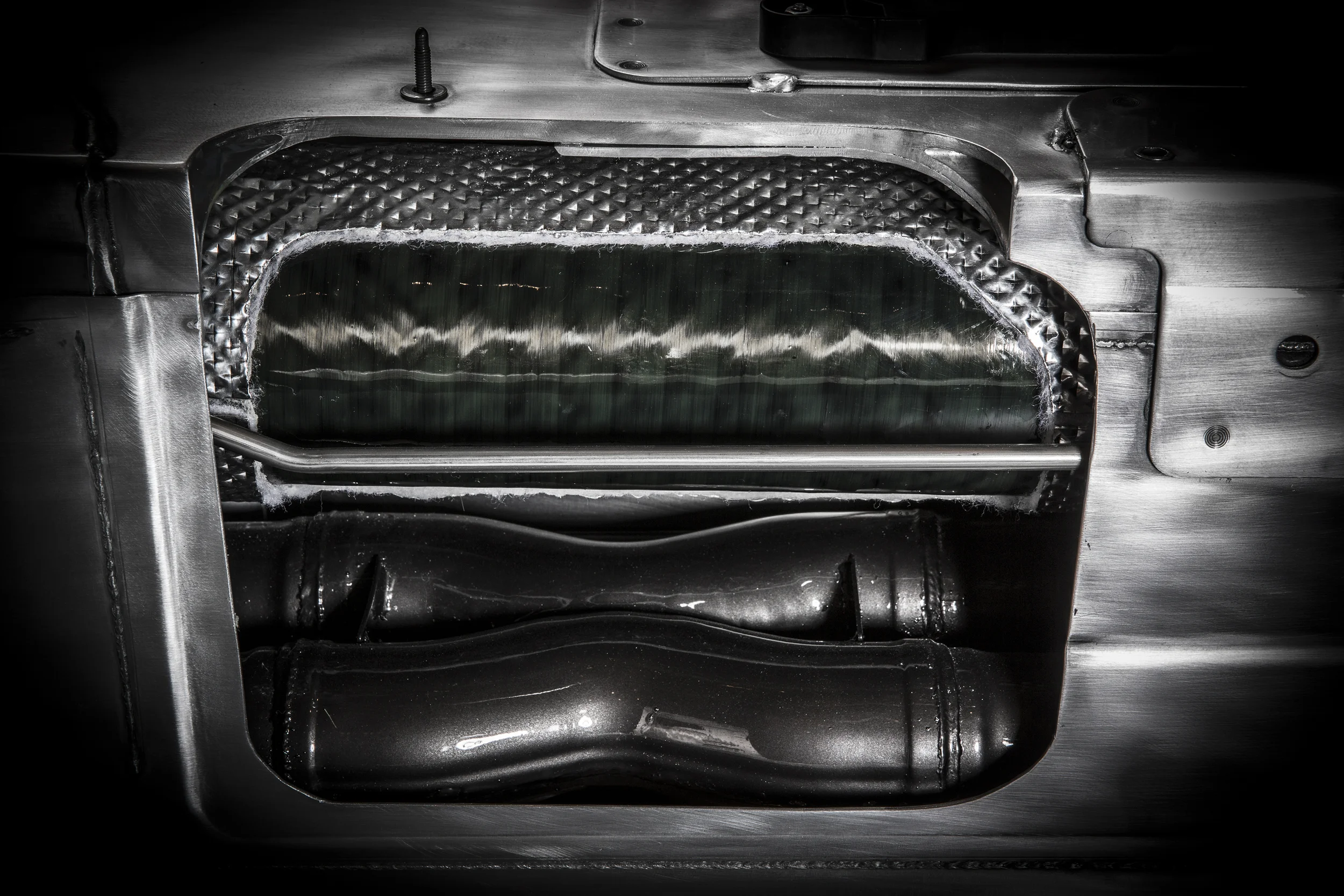 Because the Stingray’s aluminum frame is shared with the Z06 and C7.R race car, the 6.5-foot steel torque tube connecting the engine to the transmission is replaced with an industry-first carbon fibre unit (pictured, above) that is significantly lighter and three times stronger. The result is a chassis that is 40% stronger overall than the outgoing C6.R.